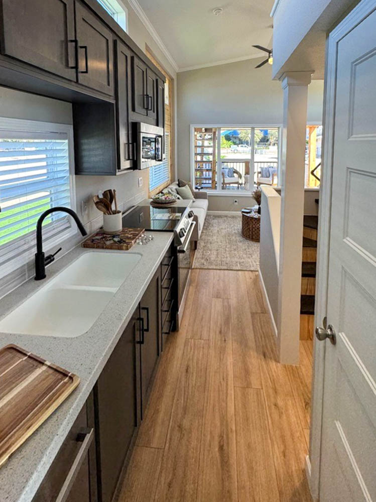 The Brawley Loft model has 1 Bed and 2 Baths. This 392 square foot Park Model with Loft home is available for delivery in Florida, Georgia, Alabama, North Carolina & South Carolina.