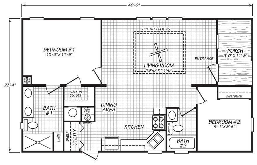 The Lyndon model has 2 Beds and 2 Baths. This 862 square foot Double Wide home is available for delivery in Florida, Georgia, Alabama, North Carolina & South Carolina.